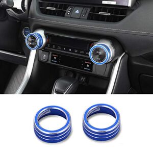 BOYUER 2PCS Aluminum Car Centre Console AC Air Conditioning Knob Button Cover For Toyota RAV4 2019 2020(BLUE)