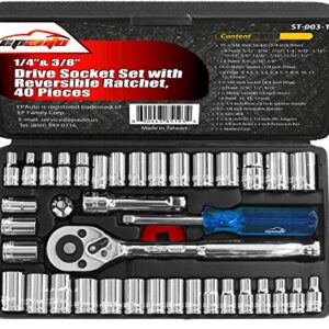 40 Pieces - EPAuto 1/4-Inch & 3/8-Inch Drive Socket Set with 72 Tooth Reversible Ratchet