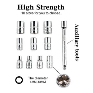 ENOUGH FOR YOU – Includes 10 Cr-V Sockets 4, 5, 6, 7, 8, 9, 10, 11, 12, 13 mm on 10 collecting holders, each socket is labeled with the size which makes organizing easy.
