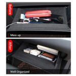 ✅🌟【CUSTOM DESIGN】- Perfectly utilizing the characteristics of the glove box, designing a two-layer storage scheme, rationally utilizing the space structure, and designing the grid, using more space, can isolate dust and can store some small items that are difficult to find, such as: phone, wallet, keys, data lines, coins, cards, paper.