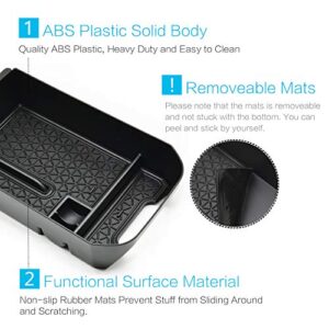 Durable Material: ABS plastic is easy to clean and heavy duty sothat you can use this center console organizer within years. Non-slip rubber mats prevent stuff from sliding around and scratching that is also removable sothat you can change the mats with others like moisture&drinks absorbent felt.