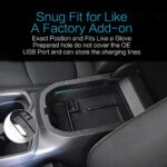 A Great Addition like from Factory: Prepared hole do not cover the OE USB Port and can store the charging lines. It even improve the design of original too deep armrest storage box. No more messy interior and you can save more time, focus on and enjoy driving!