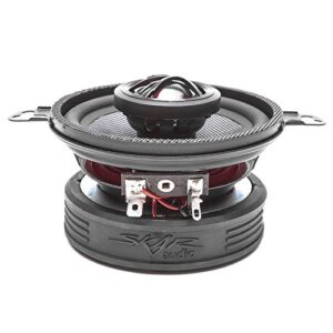 The Skar Audio TX35 are 3.5-inch, high-performance, 2-way coaxial speakers engineered and designed for the audiophile seeking sound perfection. The TX series of speakers are extremely powerful and efficient, delivering unrivaled sound clarity at the highest power levels with accuracy. Engineered for sound excellence, these 3.5″ speakers utilize a high quality 1-inch copper voice coil as well as a premium ferrite magnet, providing more than enough power to bring your music alive. The glass fiber cone coupled with the TPE surround of the mid-range woofer allow these speakers to be extremely responsive across a wide range of frequencies. Furthermore, the TX35 coaxial speakers feature 0.8-inch high fidelity silk dome tweeters for ultimate high frequency response. Sold as a pair. 4 Ohm impedance. Frequency Response: 145 Hz – 20 kHz, Sensitivity: 84 dB. Peak Power: 120 Watts (Pair), RMS Power: 60 Watts (Pair).