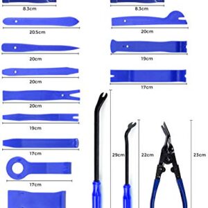 Package Include:11pcsTrim removal tools, 2pcs Clip release tools, 1pc Clip Removal Pliers, 60Pcs Retainer Clip, 20pcs Adhesive cable clips ,11pcs Car terminal removal tools, 8pcs Stainless steel stereo removal tools, 4pcs Oil seal removal hooks,2pcs Removal crowbar, 1pcs Foil Scraper Tool and a portable storage bag.