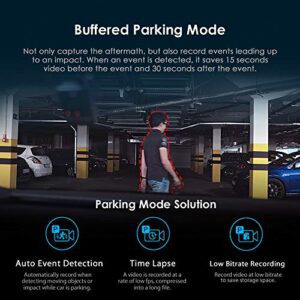 TRUE PARKING MODE: Forget the old and conventional style of parking mode ‘frame-by-frame’ recording. This camera’s video segments are captured in full-continuous clips while the vehicle is parked, rather than strung together ‘frame-by-frame’.